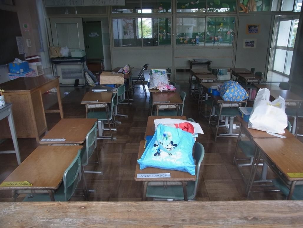 J'ai visité l'école élémentaire de Odaka. J'ai regardé dans la salle des "première année". Il y avait 20 tables, et sur six d’entre elles étaient restés des sacs contenant instruments de musique, peintures, crayons de couleur, stylos, etc., bref tout ce qui appartenait aux élèves réfugiés. En août dernier, quand on a pu pénétrer à nouveau dans la ville, les enseignants aussi sont revenus et ont remis en ordre les salles de classe. Puis les élèves sont venus pour recevoir les objets qu'ils avaient laissés, mais certains ont déménagé au loin. Ces six tables avec le sac signifient que les élèves qui y étaient assis ne sont, jusqu’à présent, pas revenus.