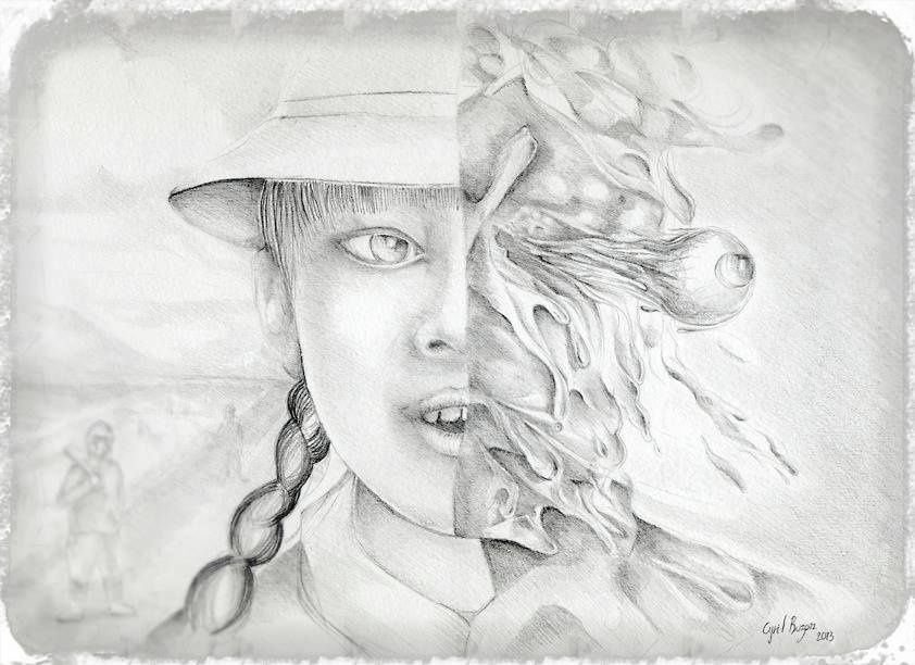 Il y a eu un temps où tout cela n’était pas nécessaire. Il y a longtemps. Il y a eu ce jour où l’univers s’est cassé. La petite fille ne s’en souvient plus, de cette vie du temps passé, elle était trop jeune : oublié ce temps jadis, où tout était à disposition, gratuit, libre, offert. Elle, elle a toujours vécu dans le mince couloir de ses possibilités. Elle a constamment habité dans la non-vie. Sa limite ? Elle étend la main, bouge les doigts. Elle peut presque la toucher, la cloche de verre qui la protège du monde. Mais le monde n’a pas attendu sagement dehors : il a défoncé le verre, est rentrée en elle, l’a infusée. La gamine est rongée. Elle le devine. Le ver du poison est dans ses entrailles. Grignotement muet, invisible, des termites. Pourtant, tout le monde a l’air de croire que la cloche est étanche. Tout le monde regarde ailleurs, pour ne pas voir les infiltrations du poison. Tout le monde a peur.