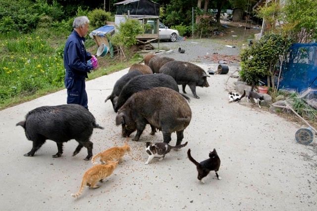 Des bovins, des chats, des chiens, quelques chevaux et une autruche sont les survivants de cette catastrophe qui a produit l’évacuation obligatoire de 200 000 personnes et l’exode volontaire de 500 000 autres. Cette zone irradiée, un territoire sans hommes, reste le seul refuge de ces animaux désorientés sans les humains, leurs maîtres. Ils erraient condamnés à mourir de faim et de soif ou par les mains des vétérinaires de la préfecture chargés de l’abattage. Si l’Homme n’a pas su rester humble devant les technologies qu’il imaginait maîtriser, il est profondément injuste que ces vies animales innocentes – des vies dont il était responsable –, connaissent une fin atroce et douloureuse. C’est pourquoi nous avons décidé d’aider un homme qui depuis trois ans les protège.