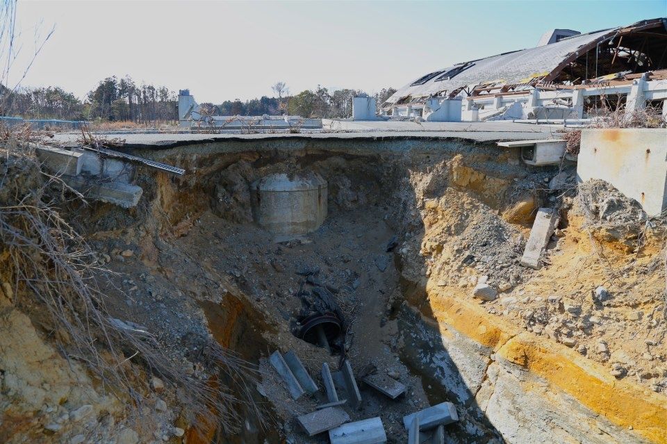 Il pleut tellement durant la saison des typhons que cela provoque des glissements de terrain. En voilà un beau qui a barré un moment la rampe d’accès au site. Rien à voir avec un « effondrement de la centrale » comme certains ont pu le croire.